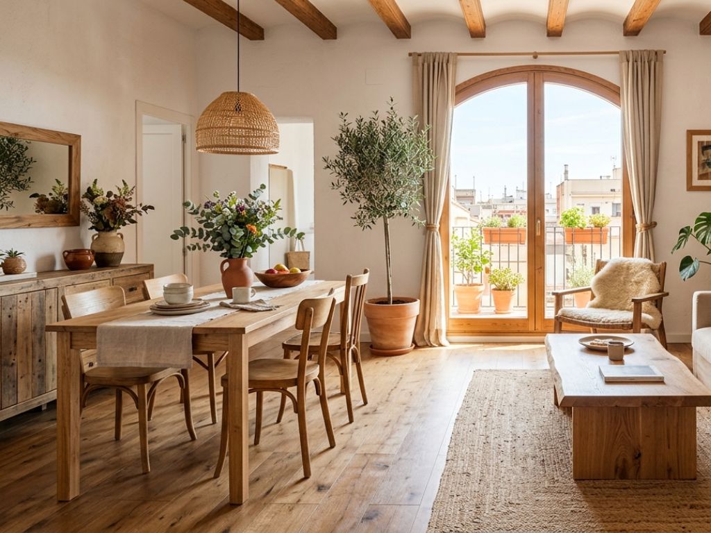 Para potenciar su presencia, conviene dejarla respirar visualmente. No es necesario recargar el entorno: una lámpara colgante, un centro de mesa sobrio y textiles ligeros suelen ser suficientes para que la madera sea la auténtica protagonista. En este tipo de espacios, las propuestas de Arrelart resultan especialmente interesantes para quienes valoran tanto el diseño como la autenticidad de los materiales naturales.